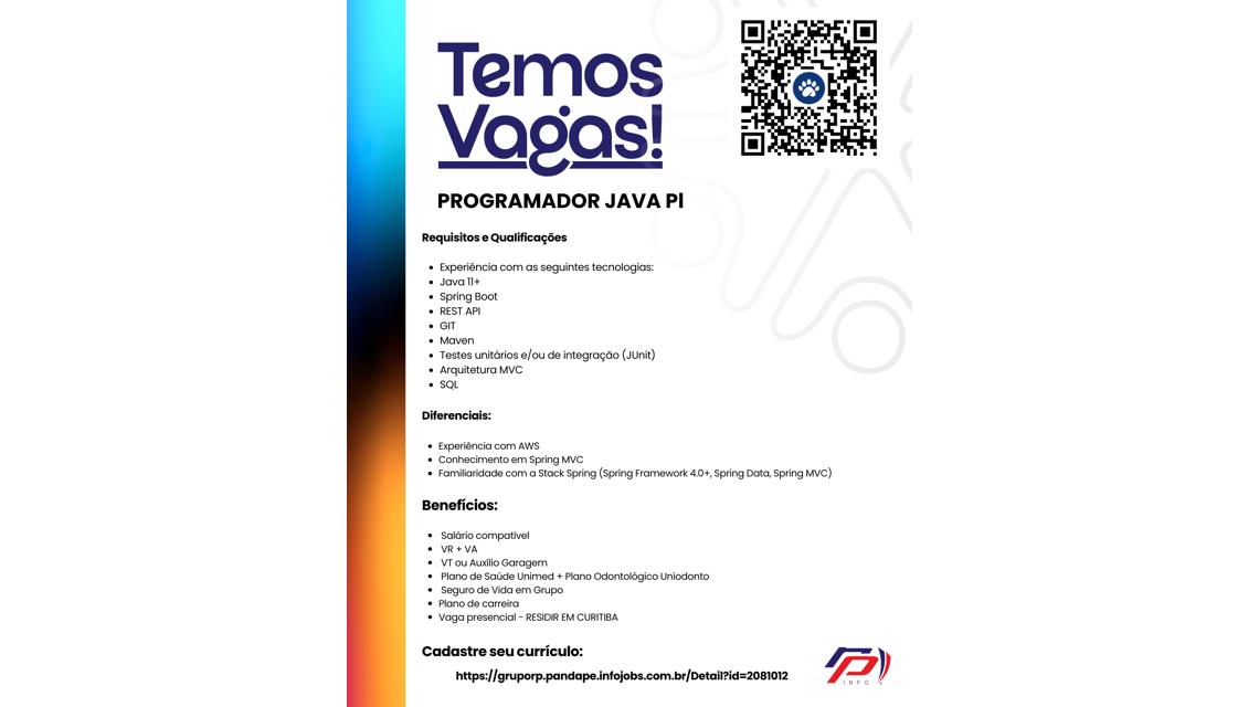 Programador Java Pl - PRESENCIAL - CURITIBA